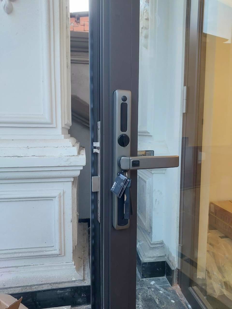 Sản phẩm khóa điện tử sử dụng được cho cửa làm bằng chất liệu nhôm kính, nhôm kính xingfa, nhôm hệ, cửa nhựa lõi thép, cửa EuroWindow, cửa sắt, cửa gỗ có đố cửa hẹp
