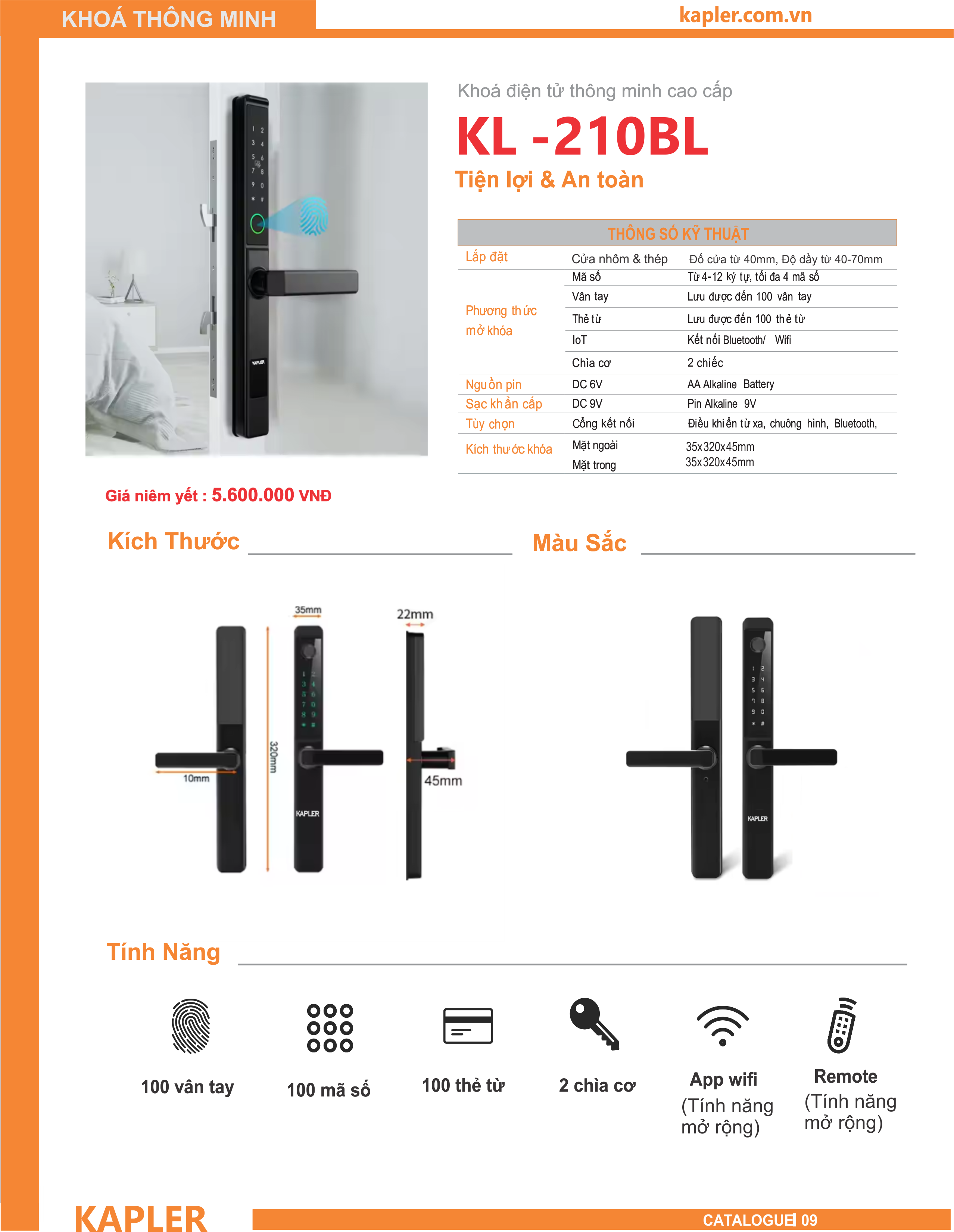 Khóa cửa điện tử cho cửa nhôm đa điểm Kapler KL-210BL là mẫu Khóa thông minh được rất nhiều gia đình ưa chuộng nhờ thiết kế đẹp và sang trọng, tích hợp những tính năng vô cùng hiện đại.