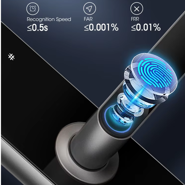 Vận hành 5 chức năng phong phú: Mở khóa bằng vân tay vân tay FPC thụy điển, mở khóa bằng mật mã cho phép cài đặt mã số ảo chống nhìn trộm, Mở khóa bằng thẻ từ IC, mở khoá bằng App Bluetooth, chìa khóa Vật Lý chìa khóa chống sao chép.