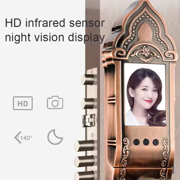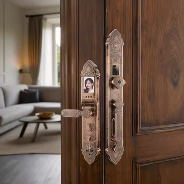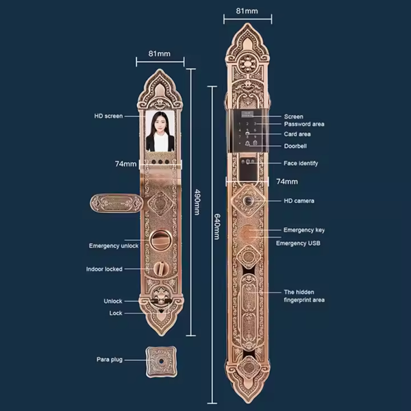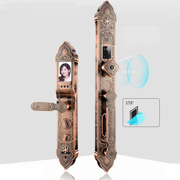 Khóa cửa vân tay tân cổ điển Kapler KL-915FTC Face ID với chất liệu hợp kim mạ đồng cao cấp, mang đến tính thẩm mỹ sang trọng cho ngôi nhà bạn, tính năng bảo mật cao mở khóa bằng vân tay, mật mã, thẻ từ. Ngoài ra Khóa vân tay Kapler KL-915FTC Face ID còn được nhà sản xuẩt tích hợp tính năng kết nối Bluetooth mở khóa bằng app điện thoại, một tính năng hoàn toàn mới áp dụng trên các dòng sản phẩm khóa vân tay cao cấp.