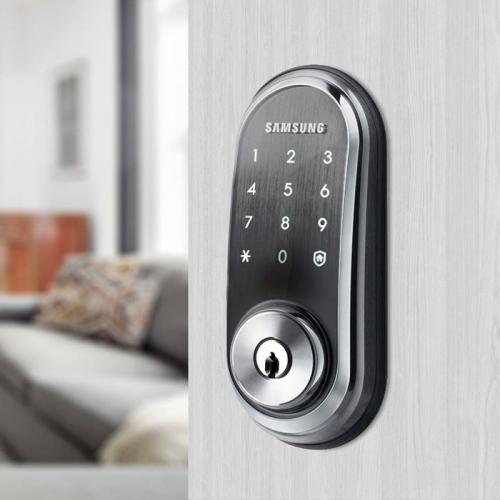 - Khóa cửa điện tử Samsung SHP-DS510 được thiết kế đột phá với viền bo tròn, chất liệu hợp kim nhôm được phủ toàn bề mặt khóa tạo sự sang trọng cho chiếc khóa này.