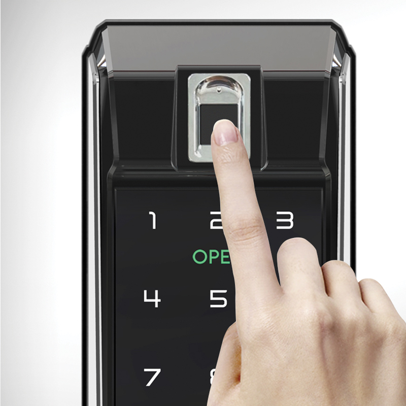 Đây là cách mở khóa cửa vân tay được nhiều người sử dụng nhất bởi nó tiết kiệm thời gian chỉ cần đặt ngón tay đã đăng ký khi cài đặt khóa điện tử vân tay là cửa đã tự động mở ra. Công nghệ mở khóa bằng vân tay dựa vào cơ chế sinh trắc học : 2 cá thể con người khác nhau không thể có dấu vân tay y hệt nhau, do đó việc sử dụng vân tay để mở khóa có độ bảo mật cao.