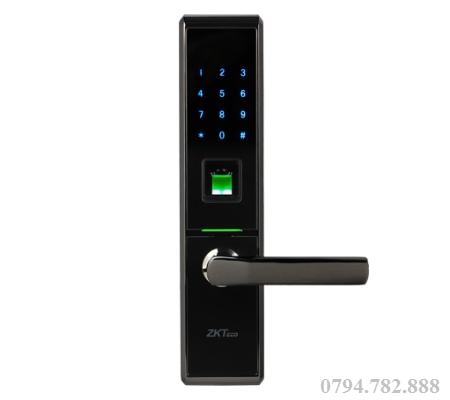 - Khóa có phần hiển thị mã số, hoạt động bằng pin AA ( loại pin này rất dễ mua ở ngoài hàng tạp hóa chỉ với giá vài ngàn đồng ), có chỗ để đọc vân tay hoặc bấm mã số.