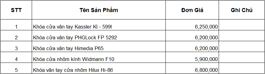 4. Bảng Giá Top 5 Khóa Cửa Nhôm Bán Nhiều Nhất 2020 của Khoacuadientu.info
