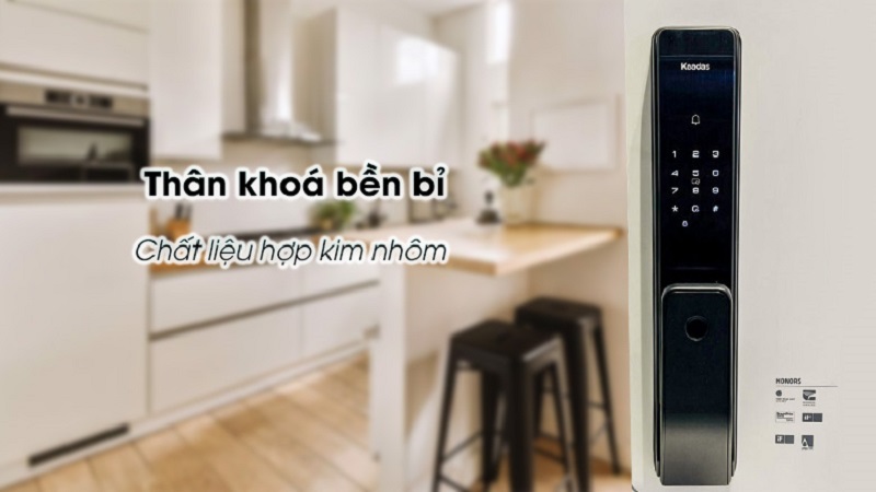Kaadas Q3 được thiết kế hiện đại và sang trọng, mang lại vẻ đẹp tinh tế cho ngôi nhà của bạn. Được làm từ hợp kim nhôm mang lại sự bền bỉ. Giúp khóa chống ăn mòn, chịu được thời tiết khắc nghiệt và đáng tin cậy trong thời gian dài.