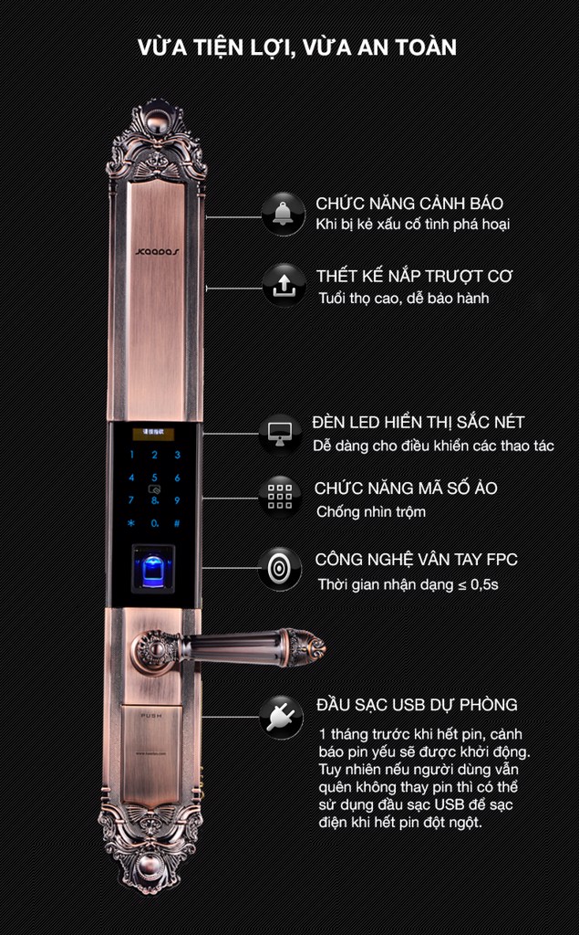 Bộ khoá cửa là một trong những điểm nhấn giúp tô điểm thêm vẻ đẹp hoàn mỹ cho cánh cửa nhà bạn. Với thiết kế tân cổ điển sang trọng cùng nhiều chức năng tiện ích, khóa vân tay kaadas 6002 chính là sự lựa chọn dành cho ngôi nhà của bạn.
