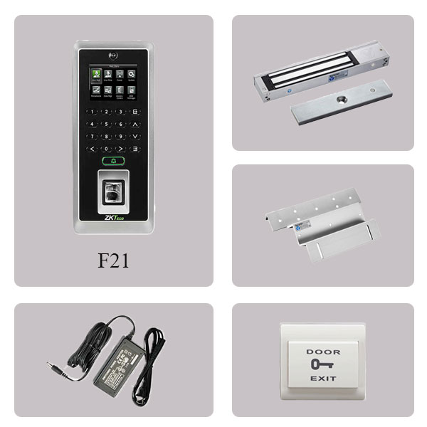 Bộ kiểm soát cửa ra vào kết hợp chấm công bằng vân tay F21 cho cửa gỗ, nhôm kính, cửa sắt, chống cháy. Sản phẩm được kết hợp giữa đầu đọc chấm công vân tay kết hợp với khóa cửa gỗ, nhôm kính, cửa sắt, chống cháy. để kiểm soát ra vào. Bộ sản phẩm hướng đến nhóm khách hàng là các văn phòng công ty vừa và nhỏ, với nhóm khách hàng này thường có số lượng nhân viên không quá nhiều (dưới 150 người) và thường có nhu cầu chấm công trực tiếp trên hệ thống kiểm soát cửa ra vào.