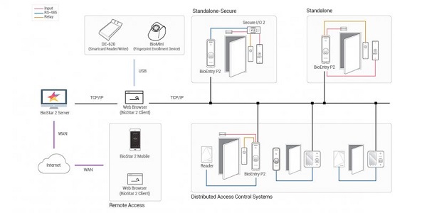 - Đầu đọc phụ: đối với các yêu cầu cần kiểm soát chi tiết thời gian ra vào cửa của nhân viên băng việc bắt buộc nhân viên phải xác nhận vân tay (hoặc thẻ từ) trên đầu đọc để mở cửa mà không dùng nút exit. Đầu đọc phụ sẽ đọc dấu vân tay (hoặc thẻ từ) sau đó chuyển về đầu đọc F21 để so sánh dấu vân tay và mở cửa khi nhân viên được xác nhận có quyền ra vào cửa.