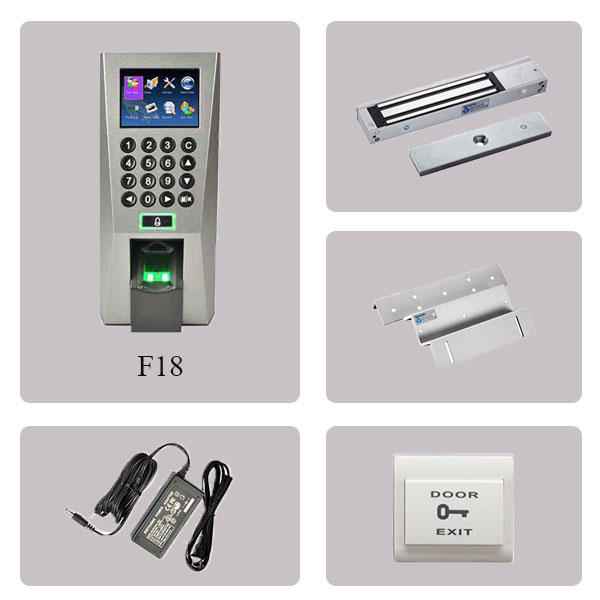 Bộ kiểm soát cửa ra vào kết hợp máy chấm công F18 là bộ kiểm soát kết hợp giữa đầu đọc chấm công vân tay. Thiết bị được kết hợp với khóa cửa gỗ, nhôm kính, cửa sắt, chống cháy. để kiểm soát ra vào. Bộ sản phẩm hướng đến nhóm khách hàng là các văn phòng công ty vừa và nhỏ, với nhóm khách hàng này thường có số lượng nhân viên không quá nhiều (dưới 150 người) và thường có nhu cầu chấm công trực tiếp trên hệ thống kiểm soát cửa ra vào.