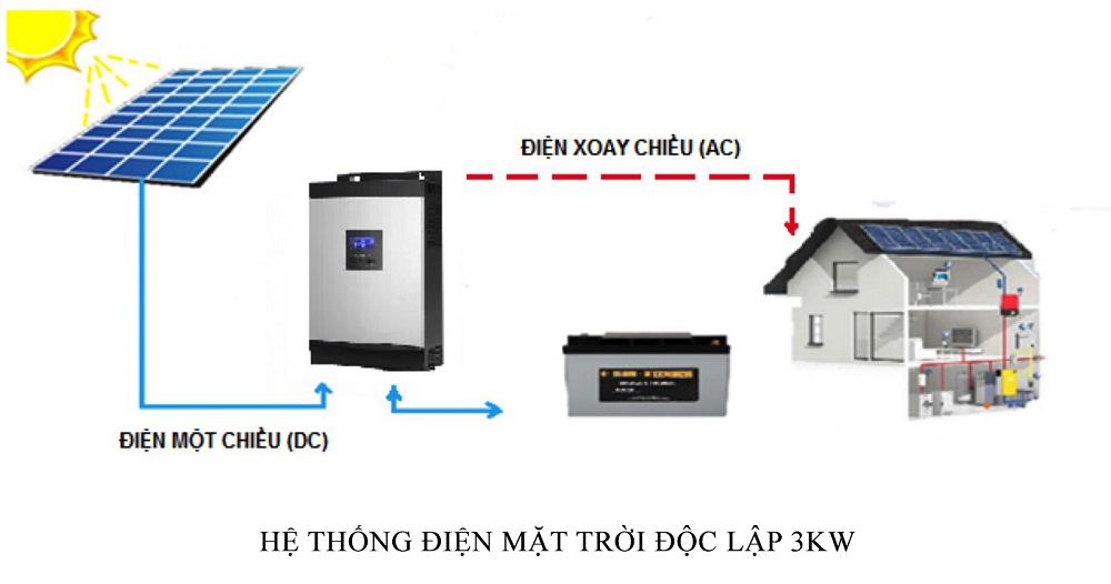 – Sau điện thu được sẽ trực tiếp dùng cho thiết bị trong nhà. Nếu thiếu thì các thiết bị điện sẽ lấy điện từ điện lưới sử dụng tiếp.