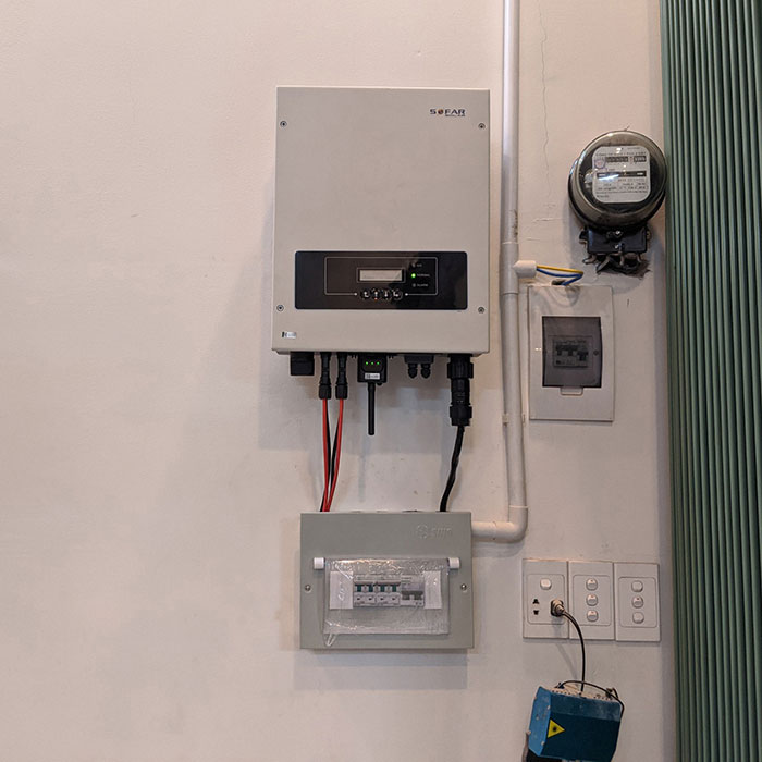INVERTER HÒA LƯỚI (Tích hợp bám tải):+ Hãng: Sofar Solar + Model: 7.5KTLM + Công suất: 7.5 KW + Điện áp bắt đầu làm việc: 120V + Điện áp DC vào tối đa: 600V + Hiệu suất: 98.2% + Hỗ trợ nhiều kết nối: RF, WiFi, RJ45 + Bảo hành: 5 năm kể từ ngày đưa vào sử dụng |