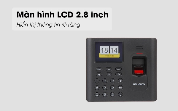 Màn hình LCD 2.8 inch hiển thị thông tin rõ ràng cho người dùng. Người sử dụng có thể theo dõi và nắm bắt được mọi thời gian khi chấm công. Ngay khi nhận được kết quả màn hình sẽ tự động lưu dữ và thông báo kết quả cho bạn.