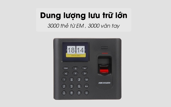 DS-K1A802AEF trang bị bộ nhớ có thể lưu trữ 3.000 thẻ, 3.000 dấu vân tay, 100.000 sự kiện