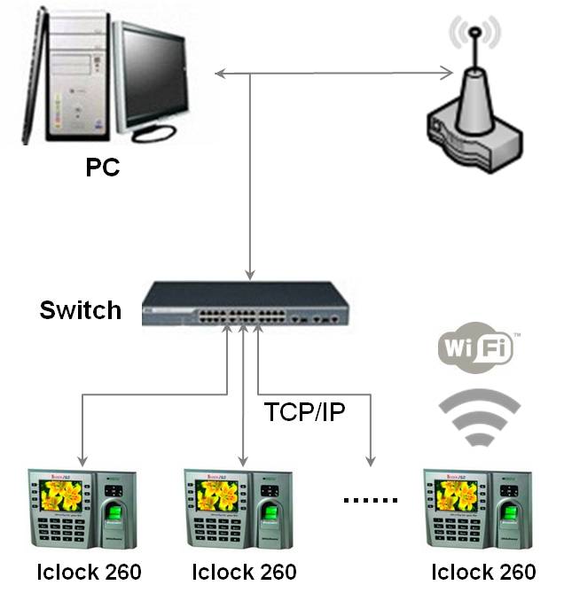 - Máy chấm công kết nối với máy tính qua cổng mạng TCP/IP rất thuận tiện hoặc RS232