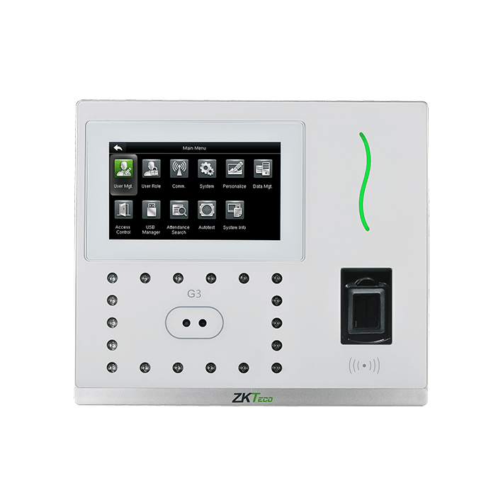 Máy chấm công nhận diện khuôn mặt và vân tay ZKTECO G3 là thiết bị chấm công sử dụng vân tay, khuôn mặt và thẻ cảm ứng với màn hình màu LCD 4.3 inch. Giao diện trực quan thân thiện với người dùng giúp bạn dễ dàng thao tác và làm quen. Máy chấm công giúp tiết kiệm chi phí, dễ dàng sử dụng và quản lý nhân lực. Thiết bị tích hợp nhiều tính năng ưu việt hơn, nhận dạng vân tay, khuôn mặt chính xác giúp nhân sự không cần lo lắng khi quên mang thẻ từ. Công việc chấm công và tính lương hàng tháng cũng trở nên dễ dàng hơn rất nhiều.