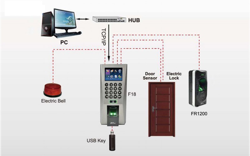 Máy chấm công vân tay và kiểm soát ra vào Zkteco F18 là đầu đọc vân tay tiên tiến cho ứng dụng kiểm soát cửa cung cấp hiệu suất hoạt động có một không hai với thuật toán tiên tiến về độ bền, độ chính xác và tốc độ xử lý tuyệt vời. F18 là nét đặc trưng của thuật toán xác nhận vân tay nhanh nhất trên nền táng thương mại và hiệu suất cao, cảm biến hồng ngoại phát hiện dấu vân tay cho chất lượng hình ảnh cao. Thiết bị này rất linh hoạt, có thể cài đặt độc lập hoặc cài đặt với trung tâm điều khiển bất kỳ của hãng khác có hỗ trợ chuẩn Wiegand.