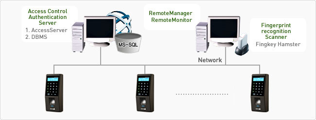- Máy chấm công kết nối máy tính qua mạng LAN TCP/ IP, Wiegand Out (24/32bit) để kiểm soát cửa, chấm công vân tay, thẻ EM và password.