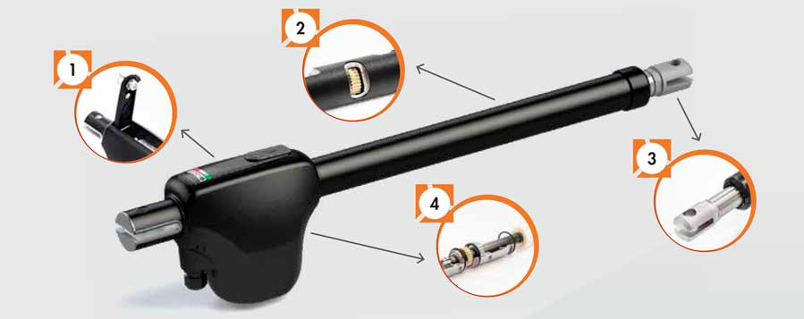 Monos 4 được tích hợp công nghệ BrushLess mới nhất. Nhờ đó motor có thể hoạt động với hiệu suất cao lên tới 99% - đóng mở không ngừng nghỉ. Tải trọng của một cánh cổng phù hợp nhất từ 100 - 450kg.