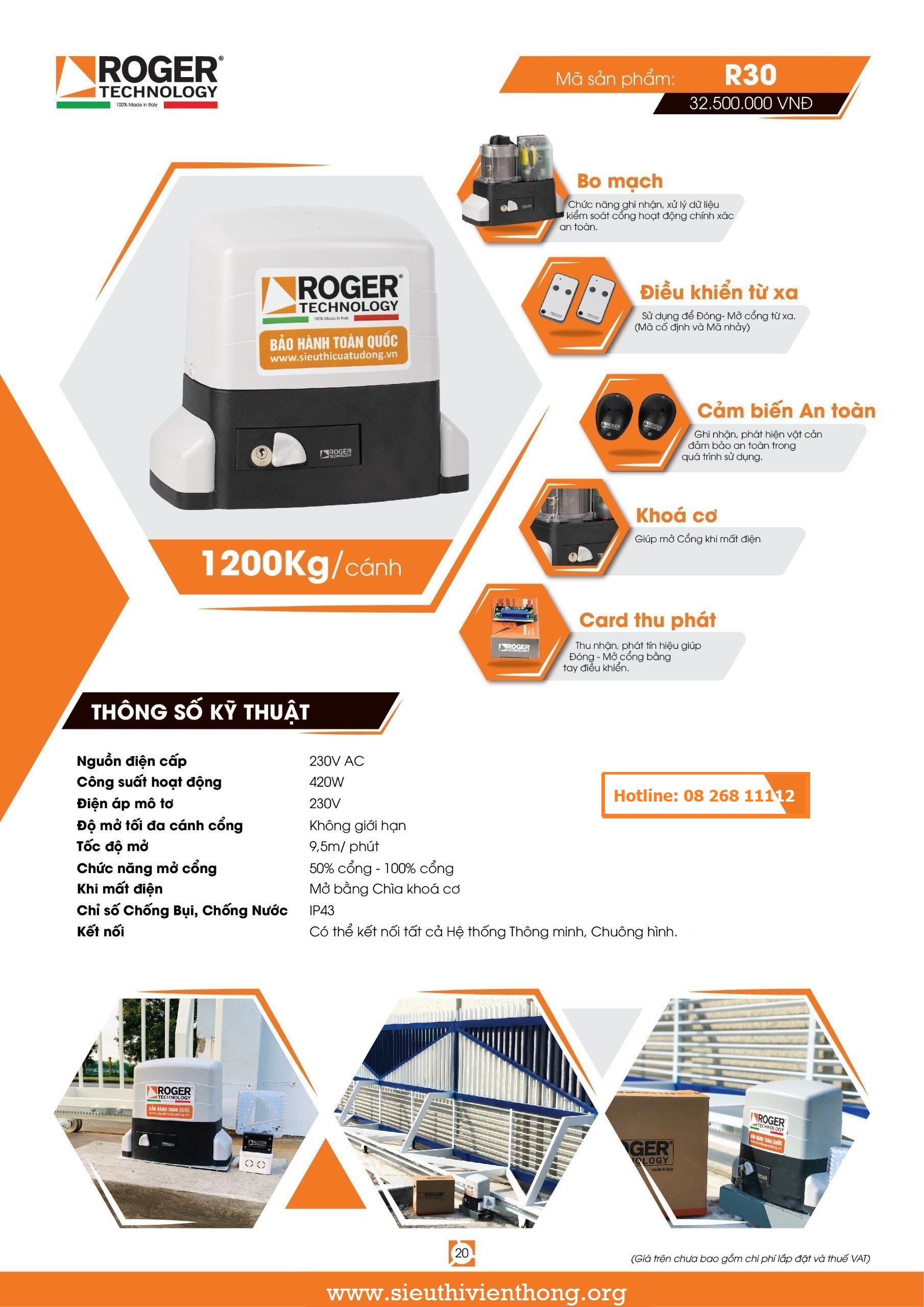 2. THÔNG SỐ KỸ THUẬT CỦA MOTOR CỬA LÙA ROGER R30-1203