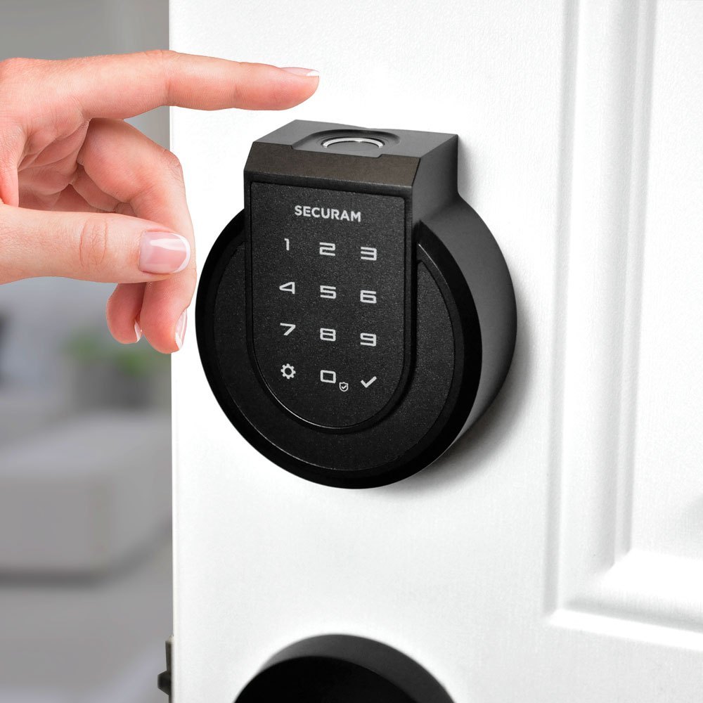 - NHIỀU PHƯƠNG THỨC MỞ KHÓA: Truy cập một chạm bằng xác thực vân tay RF + Truy cập mã + Điều khiển từ xa thông qua ứng dụng SECURAM trên iPhone hoặc Android