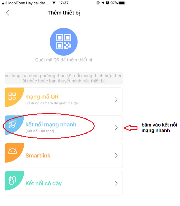 Bước 4 : Chọn " Kết nối mạng nhanh "