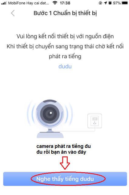 Bước 6 : Khi thiết bị phát ra tiếng dudu, Bạn ấn vào chữ " Nghe Thấy Tiếng Đu Đu "