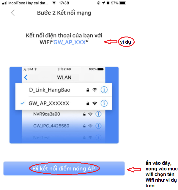 Bước 7 : Chọn AP thiết bị bạn cần kết nối. Chọn mã như hình minh họa