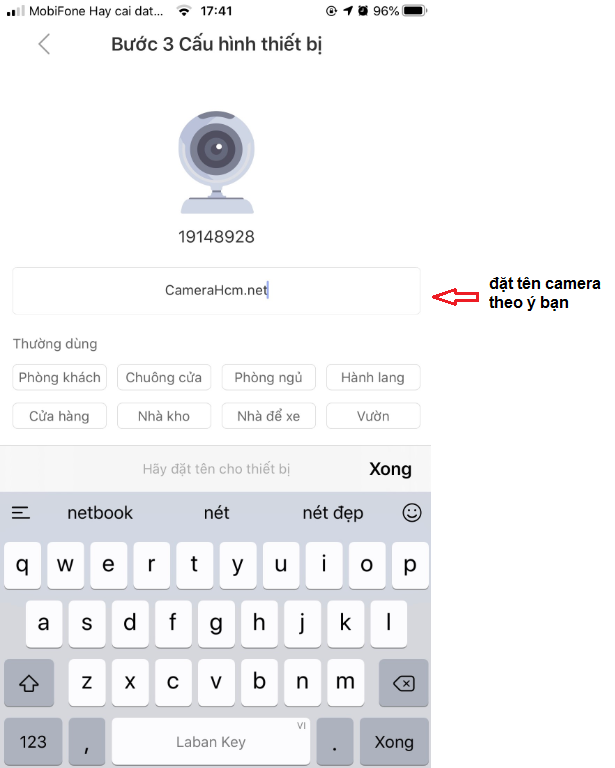 Bước 8 : Chỉnh cấu hình thiết bị. Bạn đặt tên cho camera tùy ý hoặc có thể chọn theo các vị trí có sẵn như phòng khách, phòng ngủ, nhà kho, nhà để xe, vườn…Sau đó bấm XÁC NHẬN, KIỂM TRA THIẾT BỊ CỦA TÔI.