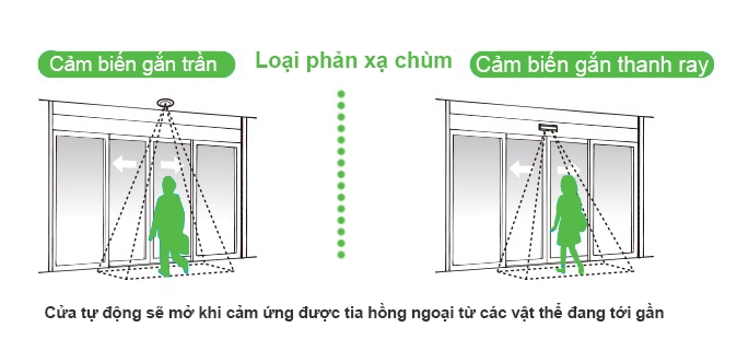 Cửa tự động hồng ngoại còn gọi là cửa tự động cảm biến hồng ngoại. Loại cửa này lại được chia thành 2 loại: