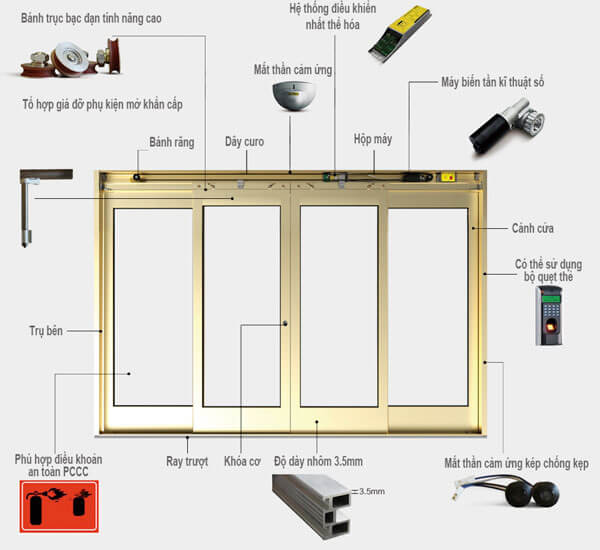 Nói về cửa trượt tự động, có rất nhiều kiểu dáng hoạt động khác nhau nhưng trên cơ bản đều bao gồm các bộ phận sau: