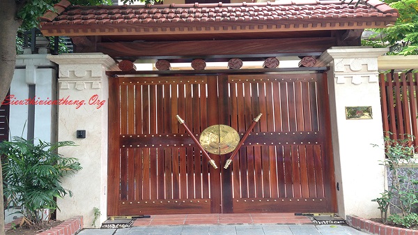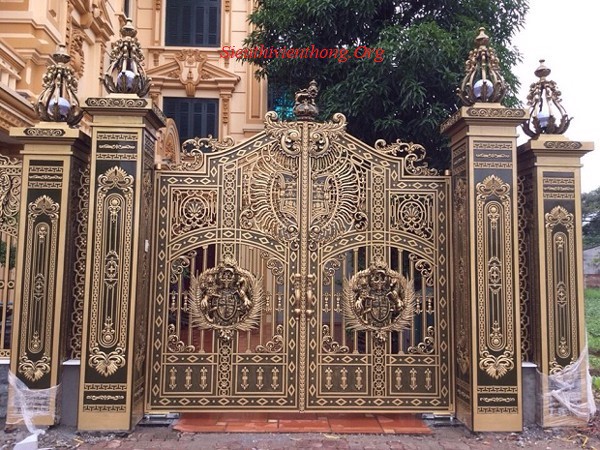 - Sau khi hoàn thành việc làm đế âm đã, tiến hành dựng cổng lần lượt từng bên cánh cổng. Tiến hành tra mỡ bôi trơn vào các cối và ngõng trước khi hàn đính cánh cổng vào ngõng và bản lề cối phía trên (tim cối trên và cối dưới phải cách đều so với trụ cổng, ngoài ra còn phải tính toán độ hở của cánh cổng so với trụ).