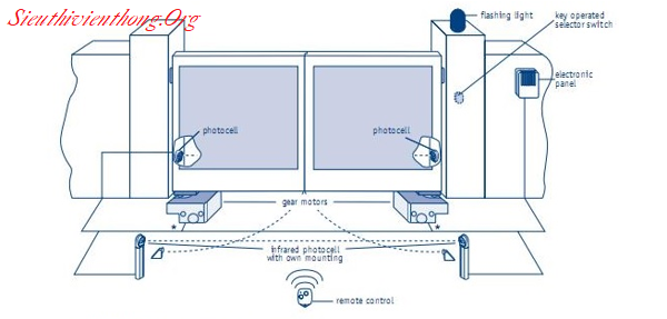 Sơ đồ nguyên lý chung của hệ thống cổng motor âm sàn: