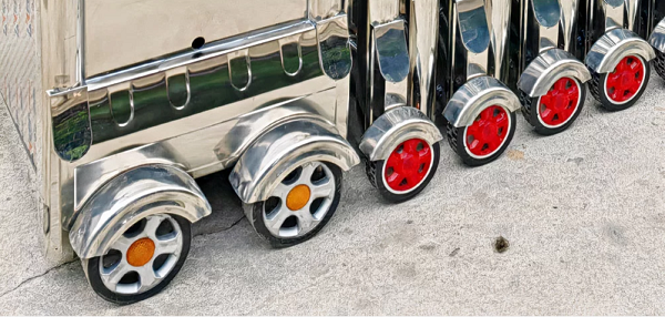 c. Hệ thống bánh xe cổng xếp tự động