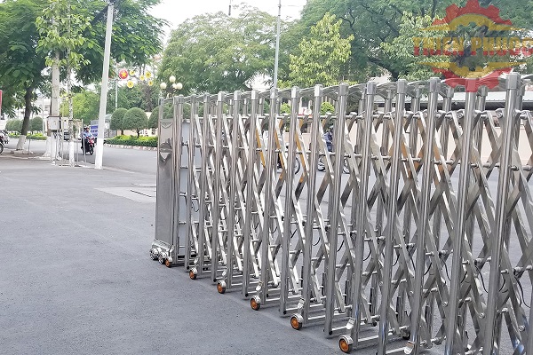 Cổng xếp inox, cổng xếp hợp kim nhôm sử dụng có độ cứng và độ bền cao, chống chịu tốt với nhiệt độ, độ ẩm, ánh nắng.