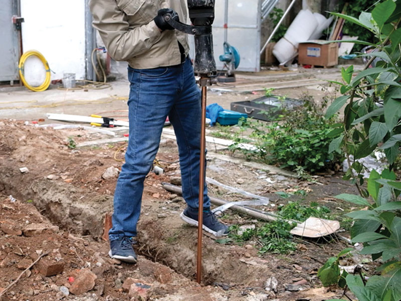 bước 2: Đào đất đóng cọc tiếp địa hoặc khoan giếng thả cọc tiếp địa xuống