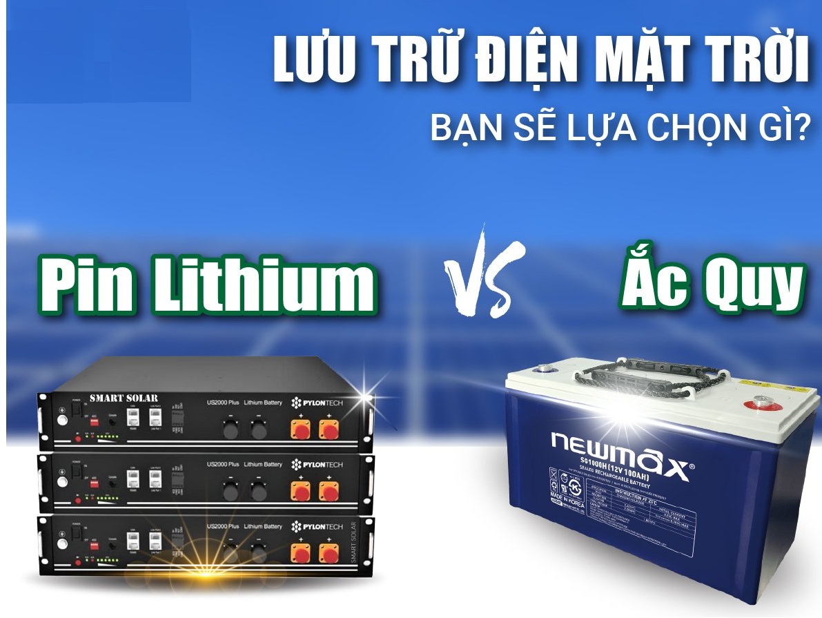- Vì điện mặt trời không được sản xuất liên tục do thời gian chiếu sáng không cố định, bởi vậy pin lưu trữ được sử dụng để lưu trữ nguồn điện. Khi điện lưới bị mất hoặc hệ thống điện mặt trời không sản xuất ra điện thì pin lưu trữ này sẽ cung cấp điện cho các tải tiêu thụ.