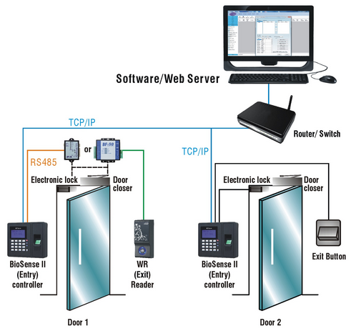 2. Sơ đồ hệ thống khóa vân tay kiểm soát ra cho văn phòng.
