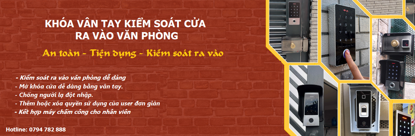 Khóa vân tay cho văn phòng là hệ thống thiết bị kiểm soát cửa ra vào chuyên dùng lắp đặt cho các cửa chính trong cty là loại khóa cửa điện tử có thể kết hợp cả Vân tay, mã số, thẻ từ và nhận diện khuôn mặt. Hệ thống kiểm soát quản lý người có thể ra vào cổng một cách chính xác an toàn. Khóa cửa cho văn phòng thường được dùng vào các loại cửa như: Cửa nhôm, cửa kính, cửa gỗ...
