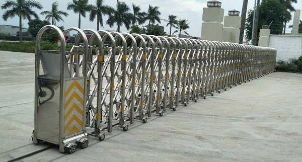 c. Cổng xếp tự động làm từ hợp kim nhôm và inox