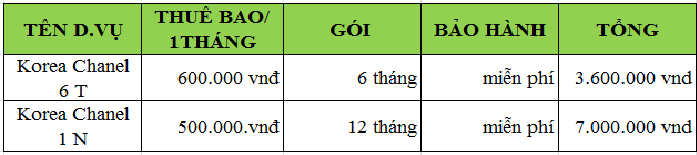 Bảng giá chi tiết Truyền Hình Hàn Quốc – KoreaTV tại TP.HCM